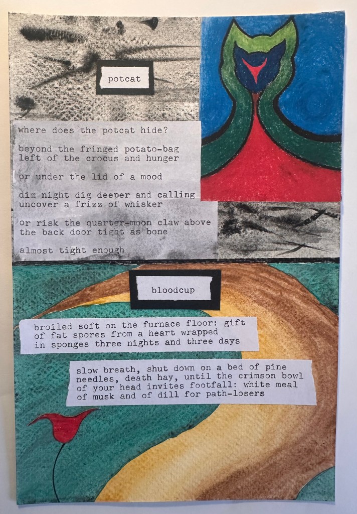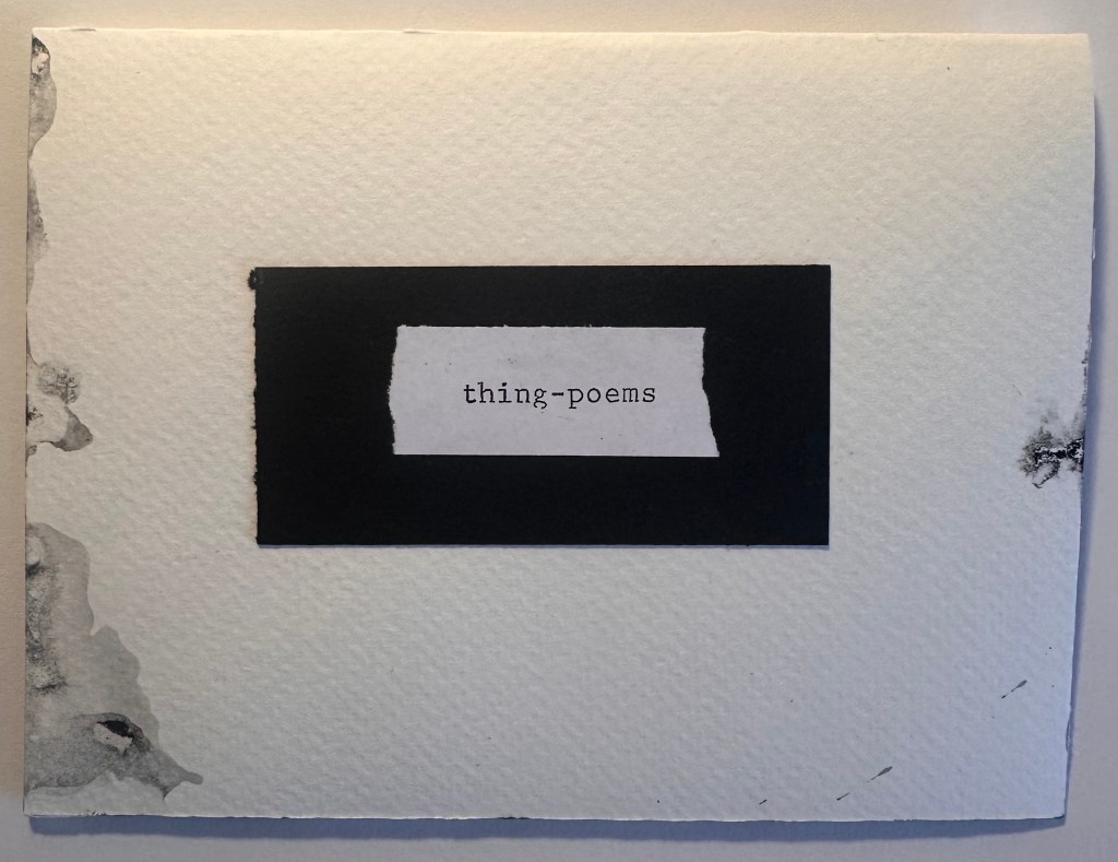 My versions of “Thing-Poems,” or “Dinggedicht” in German after Rilke, are really “Thing-Pages.” They are a constellation of poems about invented “things” accompanied by original art. Each duo of Thing-Poems appears on a folded card with an origin legend on the back.